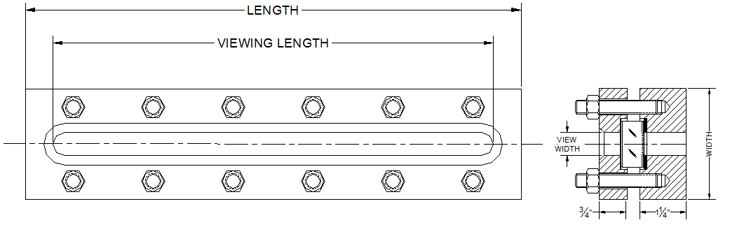 Standard lengths are listed with special sizes available. These sight glasses are recommended for pressures and temperatures up to 150 PSIG (14.3 Barg) and 500 ºF (260 ºC).