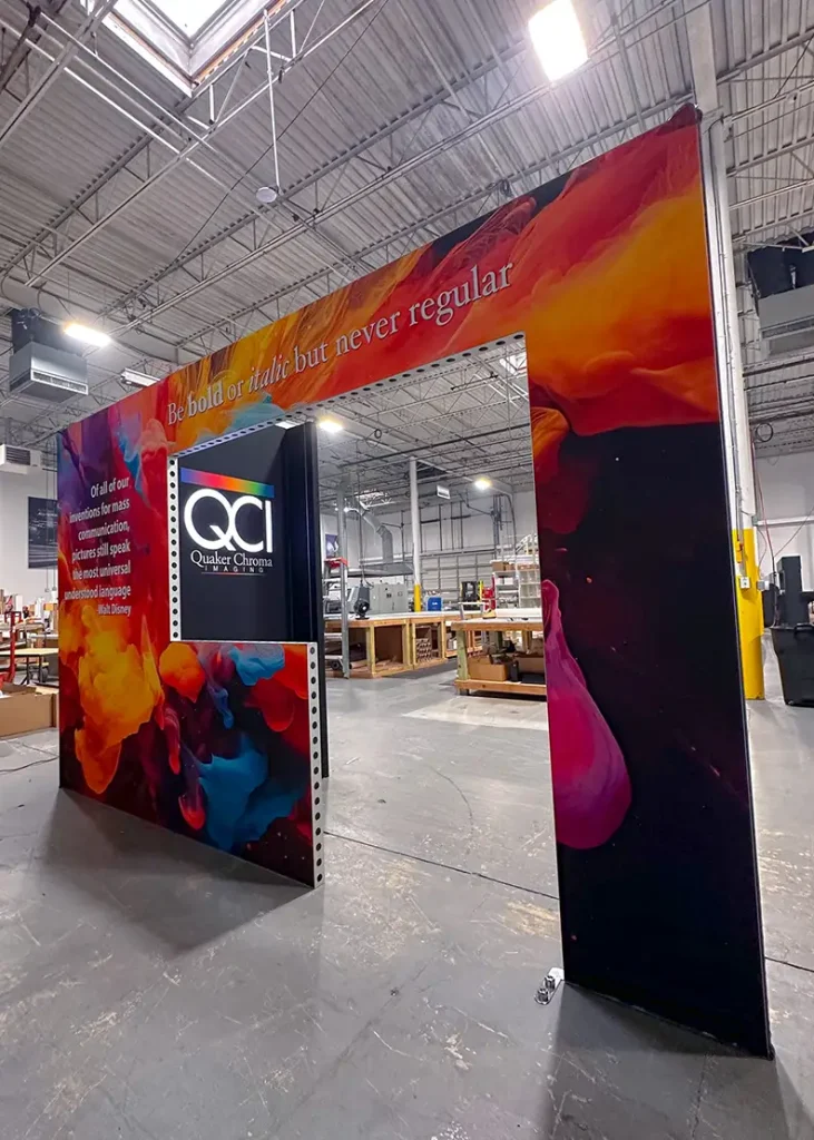 Building a booth, hanging a showstopper, or branding a whole event? Quaker Chroma delivers high-quality, dye-sublimated fabric graphics that make your message pop. Every graphic is custom-fitted, wrinkle-resistant, and a breeze to install — then shipped straight to your show site or event venue.